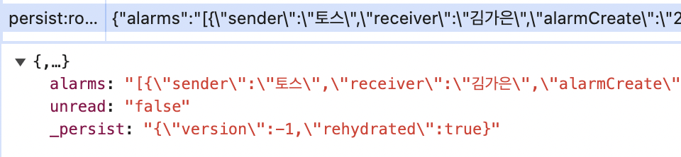 프로젝트에서 Redux 상태를 로컬 스토리지에 저장하고 새로고침 후에도 유지되도록 하기 위해 redux-persist를 사용했다.근데 알림은 제대로 저장되고 데이터가 유지되는데 유저의 정보가 계속 null로 저장되거나 아예 안뜨거나 이런 상태인거임....사실 유저정보는 로컬 스토리지에서 바로 가져와 사용하고있어서 그냥 한번 reducer만들어본거라 신경안쓰다가 방금 문제 발견한건 안비밀임ㅋㅋ 문제의 유저 정보... 아니 근데 분명 데이터는 userReducer에 잘 들어오고 있는걸 콘솔에서 확인했단말임...이거봐..... 이게 확실히 redux-persist 설정문제인지는 잘 모르겠는데.... Redux에서 여러 개의 reducer를 사용하는 경우, 각각의 reducer에 대해 개별적으로 persist ..